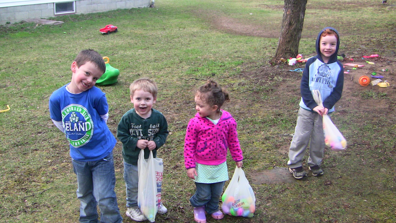 The kids waited anxiously to get out there and hunt, but just as dinner was over, it started raining. We sent them out right away thinking it was going to just pass.